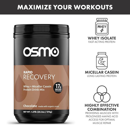 Chocolate Whey & Micellar Casein Protein Powder Blend with Carbohydrates & Caffeine for Rapid Recovery - All Natural Ingredients, Muscle Repair & Glycogen Restoration - 14 Servings