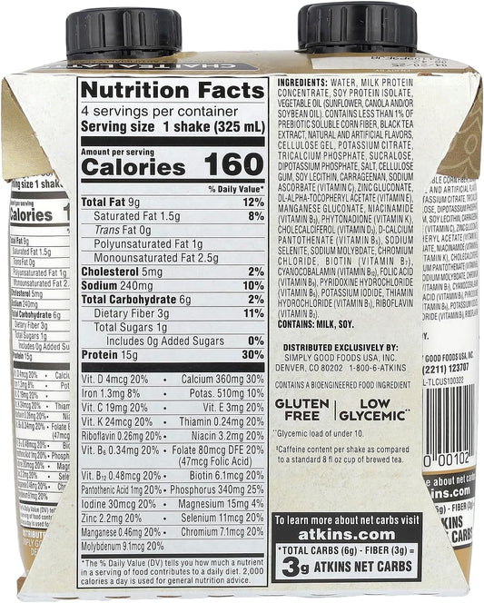Atkins Iced Chai Tea Latte Protein Shake - Keto & Gluten Free (4 Pack)