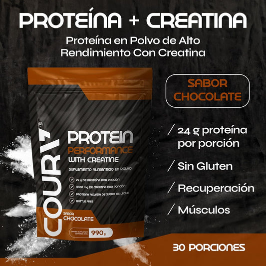 High-Performance Protein Powder with Creatine - Rich Chocolate Flavor - Ideal for Athletes - Gluten-Free - 990g