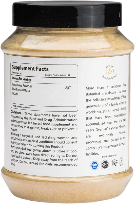 Punarnava Powder 1lb - Boerhavia Diffusa Herbal Supplement | Ayurvedic, Gluten Free, Non-GMO, Vegan | 100% Pure Steam Treated Formula