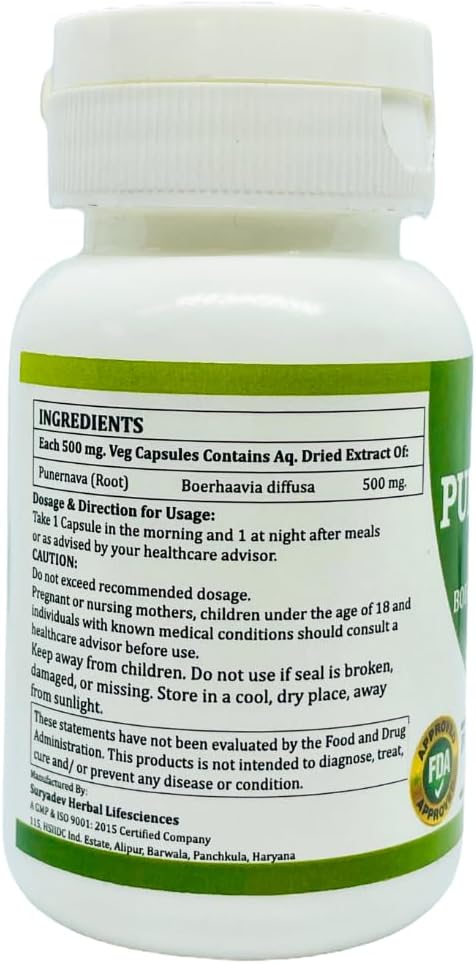 Punarnava Capsules - Natural Herbal Veg. Capsules, Pack of 60 x 500 mg by Morsan Healthcare