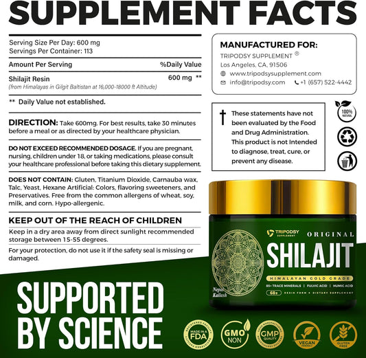 600mg Pure Himalayan Shilajit Resin Supplement - Immune Support & Well-Being Boost for Men & Women - Natural Flavor - 68g, 113 Servings