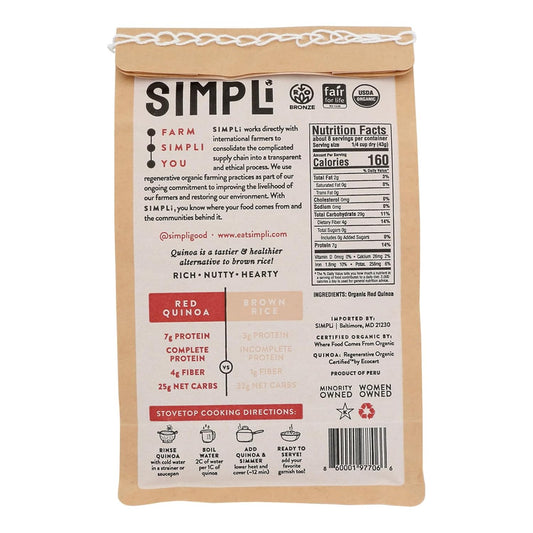 Organic Red Quinoa | Certified Regenerative | 12 OZ Pack | SIMPLi Brand
