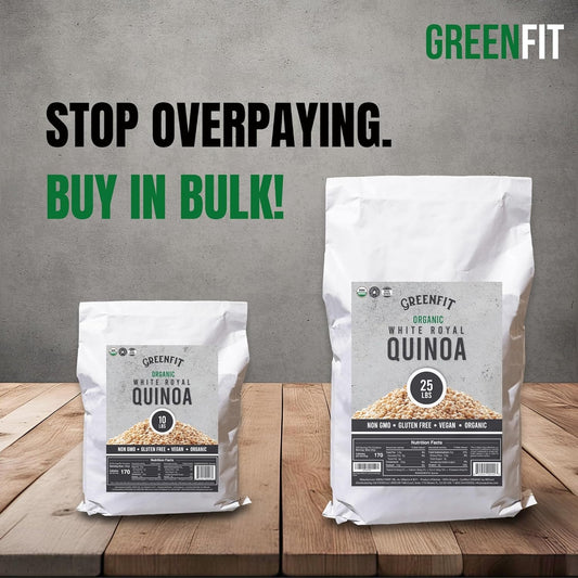 Organic Royal White Quinoa by OA Quinoa Now Greenfit - Non-GMO, Gluten-Free, Vegan, Complete Protein, High Fiber, Low-Calorie (25lb)