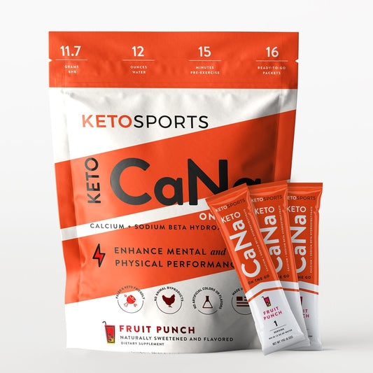 KetoSports KetoCaNa GO Fruit Punch Single Serve Ketone Supplement - Boost Physical & Mental Performance, Keto & Paleo-Friendly, Naturally Sweetened - 16 Stick Packs
