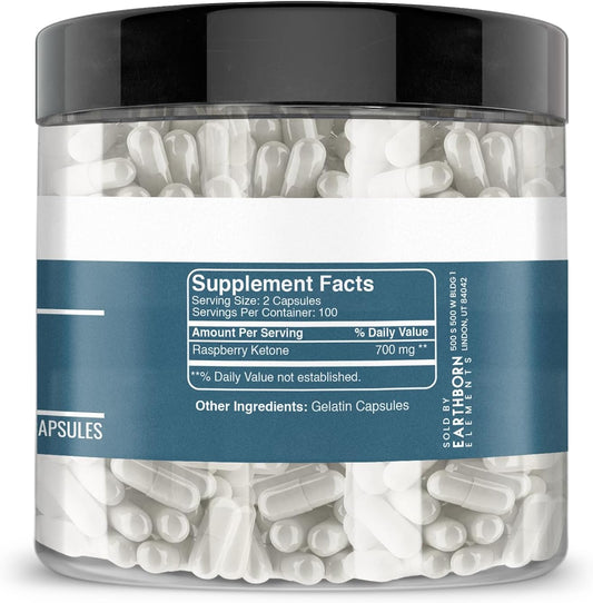 200 Capsules of Earthborn Elements Raspberry Ketones - Pure & Undiluted Formula with No Additives Included