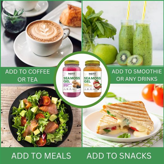 Bundle of 2 Jars 24oz MAX FIT Sea Moss Gel: Apple Cinnamon Elderberry Ginger Wildсrafted Gold from Saint Lucia | 92 Vitamins and Minerals | Organic Raw+Non-GMO | Vegan Superfood