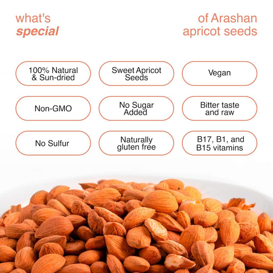 Arashan Apricot Seeds - Sweet Raw Apricot Kernels from Kyrgyzstan | Sundried with 60% Oil | 1 LB Pack