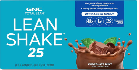 High Protein Chocolate Mint Meal Replacement Shake - GNC Lean Shake 25 Ready to Drink | 12 Bottles