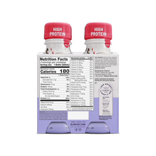 SlimFast Original Strawberries & Cream Meal Replacement Shake - 4 Pack, 10g Protein, 11 Fl. Oz Bottle - Ready to Drink for Weight Loss