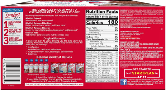 SlimFast Original Rich Chocolate Royale Meal Replacement Shake - 10g Protein, 11 Fl. Oz Bottle, 8 Pack - Ready to Drink for Weight Loss