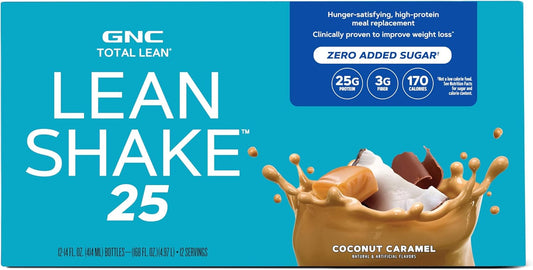 GNC Lean Shake 25 Coconut Caramel - 12 Bottles | High Protein Ready to Drink Meal Replacement with Vitamins & Minerals