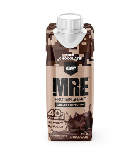 Redcon1 MRE Milk Chocolate Protein Shake - 12 Pack, 40g Protein, Real Whole Food Blends, Lactose/Whey Free, Keto-Friendly, Easy to Digest