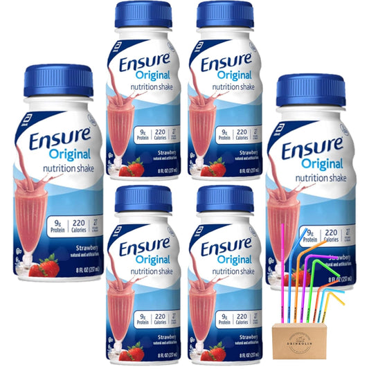 Kaxilu Strawberry Nutrition Shakes - 6 Pack With Drinkolin Straws, 8 OZ - Packed with Vitamins and Minerals for a Healthy Boost