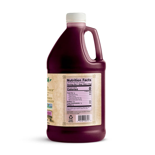 Organic Red Wine Vinegar with The Mother, Fresh Pressed from Cabernet Grapes - Raw, Unpasteurized, Unfiltered - 2/16oz Glass Bottles
