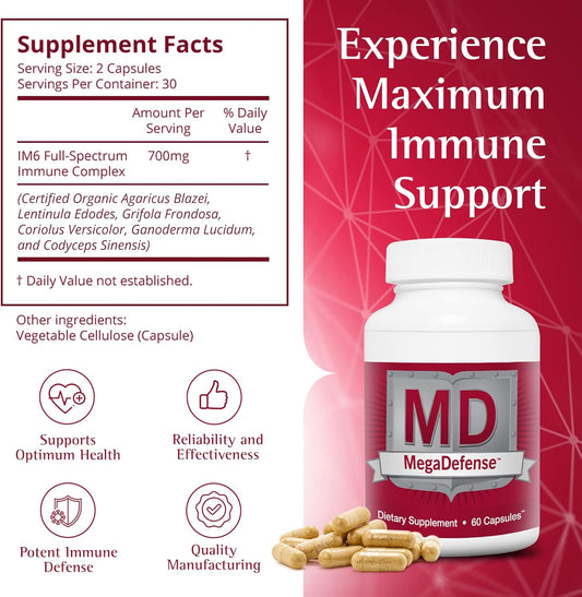3 Bottles of Waiora MegaDefense Mushroom Capsules - Daily Wellness Supplement with Reishi, Turkey Tail, Cordyceps, Maitake, Agaricus & Shiitake - Non-GMO (60 Veggie Caps)