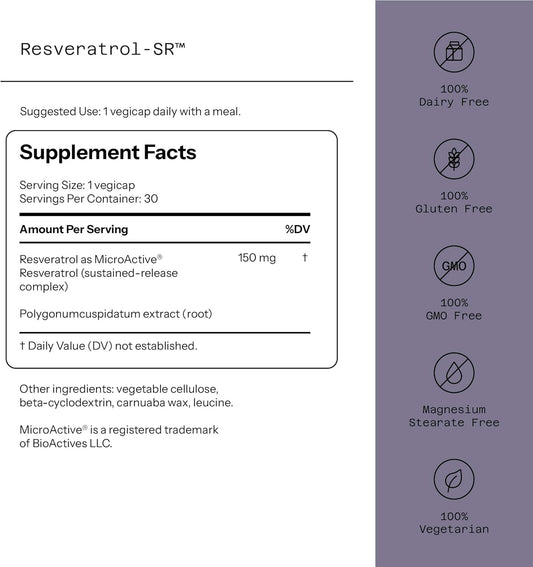 Resveratrol SR - All Natural Anti-Aging Formula for Quality of Life - 30 Vegicaps