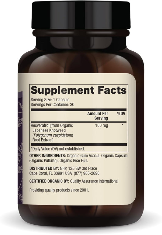 Organic Resveratrol Dietary Supplement 100mg Capsules - 30 Servings, Non GMO, Gluten & Soy Free, USDA Certified Organic - Dr. Mercola