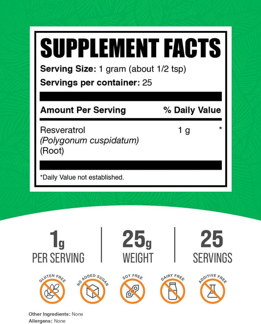 Resveratrol Powder 1000mg - Antioxidant Supplement, Polygonum Cuspidatum Extract - Gluten Free, 25g (0.88 oz) - Bulk Supply