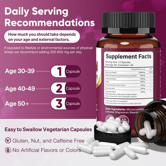 11-in-1 NMNH Supplement with Resveratrol & CoQ10 - 600mg per Serving, Anti-Aging Support - 60 Count, 30 Day Supply