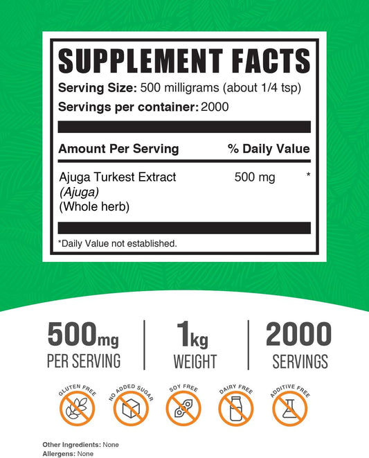 BulkSupplements.com Ajuga Turkest Extract Powder - Herbal Supplement, 500mg per Serving, Pure & Gluten Free, 1kg (2.2 lbs)