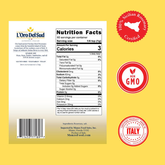 Sicilian Rosemary Leaves, 2.11 oz (60g) Whole Leaf Sprigs from Italy - Non-GMO L'Oro Del Sud