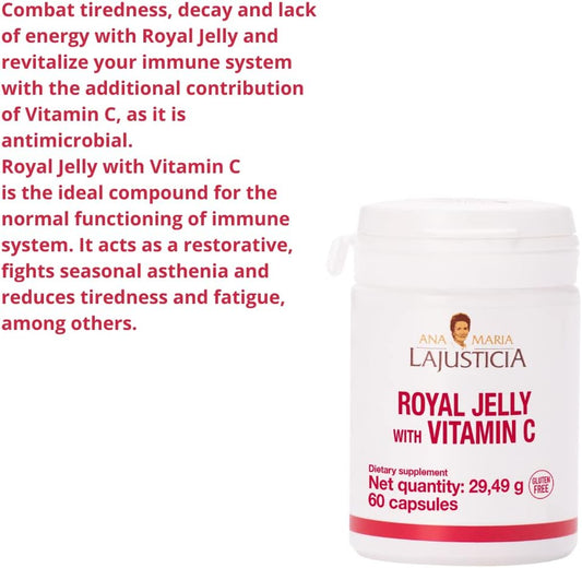 Ana Maria Lajusticia Royal Jelly Capsules with Vitamin C - 60 Count, Dairy and Gluten Free, Vegetarian Friendly for Vascular Health