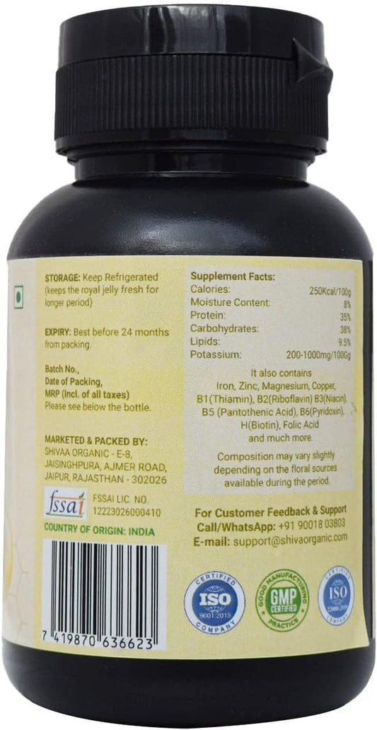Organic Freeze-Dried Royal Jelly Capsules - High 10 HDA: 6% - 60 Capsules (500mg) - Shiva Brand
