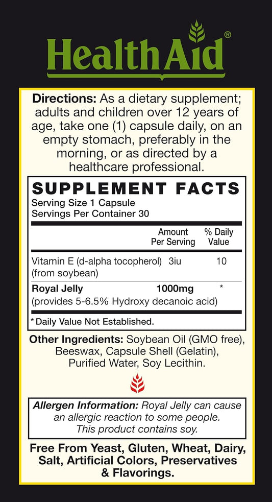 Tang Royal Jelly 1000mg Softgel Capsules by HealthAid for Overall Health and Wellness - 30 Count