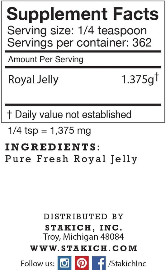 Stakich Fresh Royal Jelly - 100% Pure and Natural - No Additives or Preservatives - 16 oz (1 lb) Jar