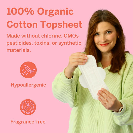 Organic Cotton Panty Liners with Wings - Ultra Thin & Unscented - Biodegradable Menstrual Pads - Sanitary Period Liners for Women & Teens - 64 Count
