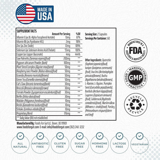 Prostate Support Supplement with Africanum Extract - All Natural Prostate Complex for Men - 60 Capsules