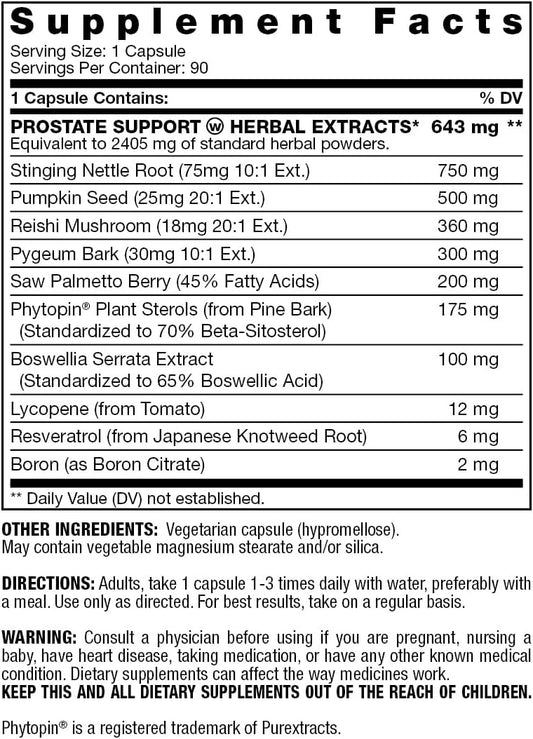 Prostate Support Supplement with 3X Strength Beta Sitosterol, Saw Palmetto, Nettle & Pygeum Bark Extracts - 90 Capsules for Prostate Health & Urinary Flow