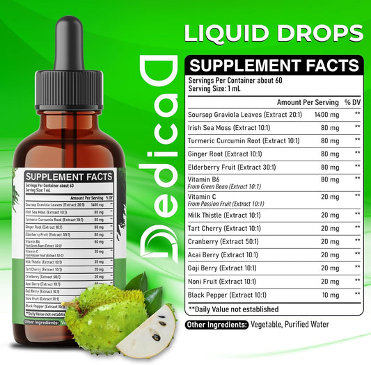 14-in-1 Soursop Liquid Drops with Sea Moss, Turmeric, Ginger, Elderberry - Immune Support - 2 fl oz