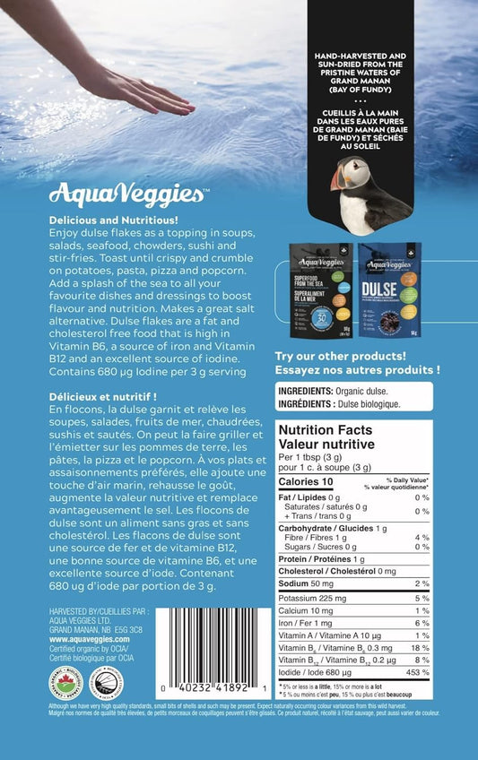 Organic Atlantic Dulse Flakes 4 Oz - Hand-Harvested from Bay of Fundy - Rich in Vitamins B6, B12, Iron, Iodine - Sun-Dried Aquatic Veggies - High in Protein, Calcium, and Fiber - 4 Ounce Pack