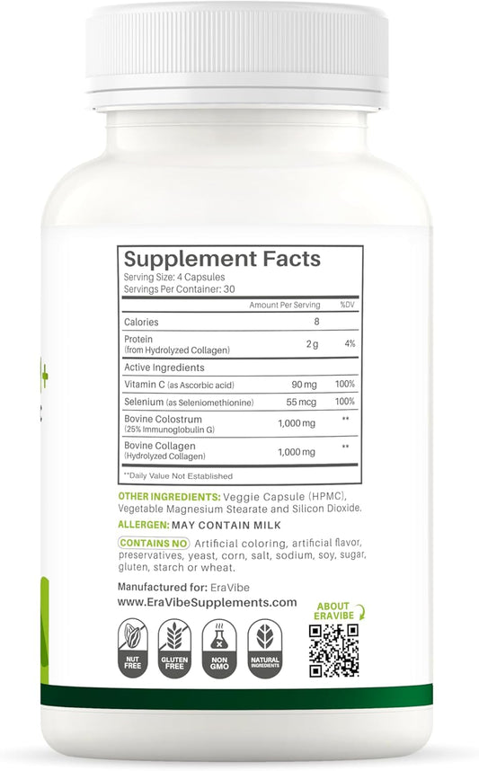 Colostrum Cowlostrum+ Immune Support Supplement with Collagen, Selenium, Vitamin C - 2100mg, 120 Capsules