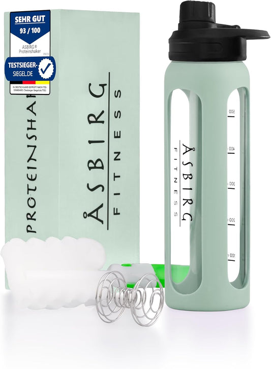 Glass Protein Shaker Bottle with Spiral Ball 24 oz - Asbirg 2.0 Fitness - Drinking Bottle in Pastel Green Color