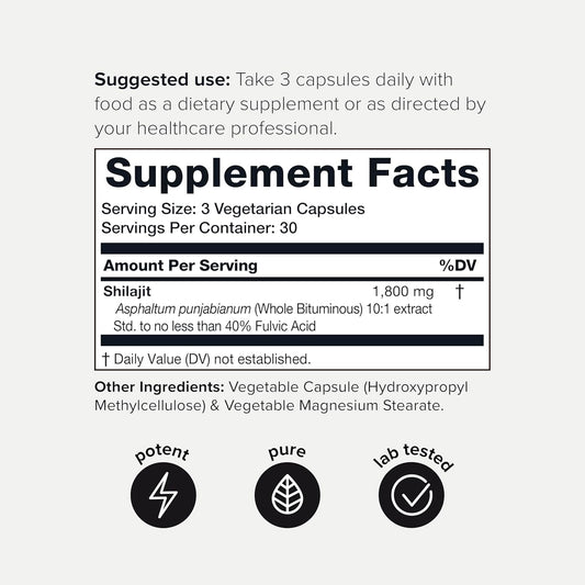 Natural Fulvic Acid & Mineral-Rich Shilajit Capsules - 60 Count - Non-GMO, Gluten Free, Vegan Friendly
