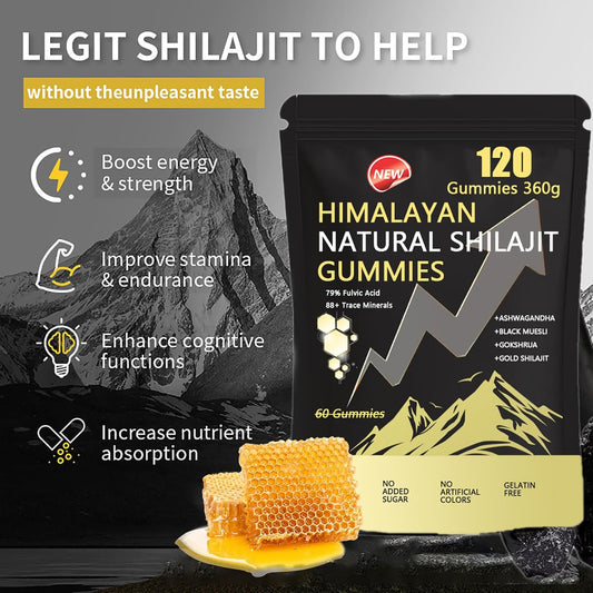 Organic Shilajit Gummies - 100% Pure Himalayan Shilajit with Fulvic Acid & Trace Minerals - Non-GMO Gummy Supplement for Men & Women - 60 Count