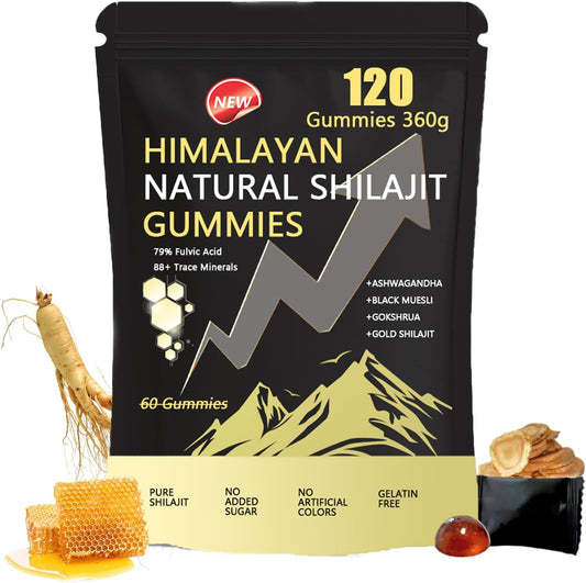 Organic Peabloom Shilajit Gummies for Men - 120 Count, Ashwagandha & Ginseng Infused with 79% Fulvic Acid & 88+ Trace Minerals - Non-GMO & Sugar Free