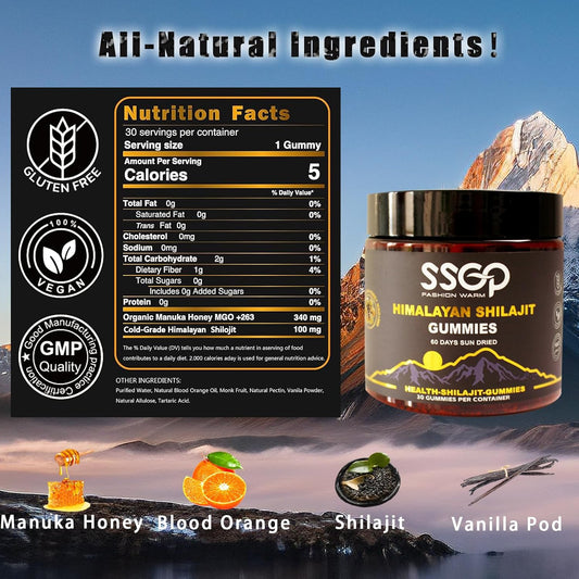 Natural Energy Boosting Himalayan Shilajit Gummies with Fulvic Acid and Trace Elements, Sweetened with Manuka Honey, Clean Formula, 30 Gummies