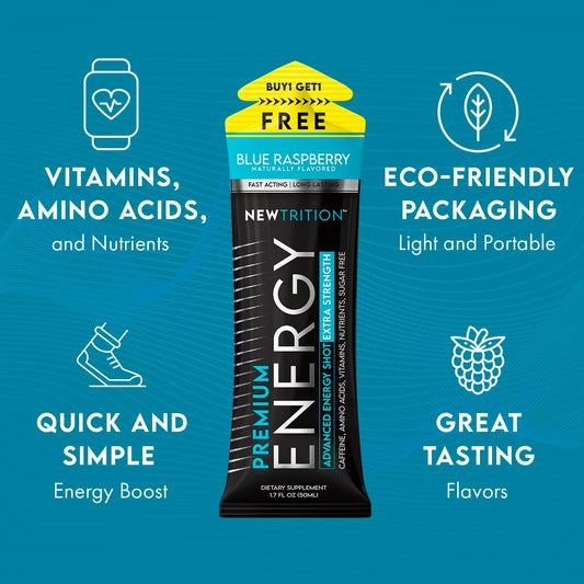 Extra Strength Blue Raspberry Energy Shots with Vitamin B & Amino Acids - Sugar-Free Caffeine Boost Shot - 1.7 fl oz, 24 Count