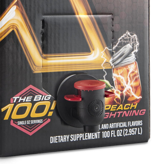 Peach Lightning XMODE Energy Shots Dispenser - 100 Servings with Refillable Bottles & 150mg Caffeine Per Oz
