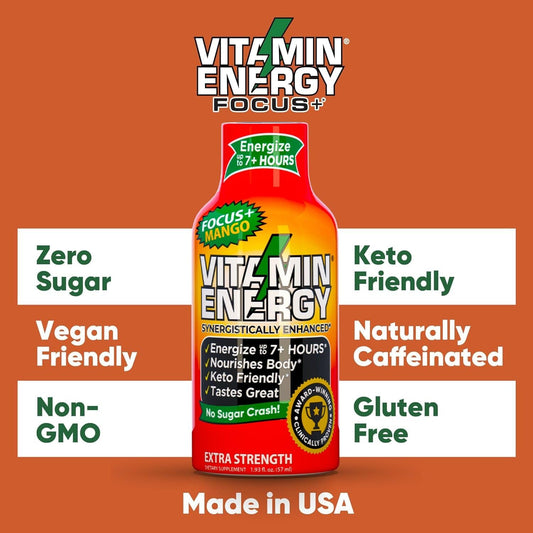 Sugar-Free Vitamin B12 Energy Shots for Healthy Energy & Focus | Mango Flavor | 7+ Hours of Energy | Pack of 12 - 1.93 fl oz