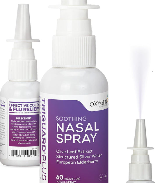 TriGuard Plus Colloidal Silver Nasal Spray with Olive Leaf & Elderberry - 2 oz | Sinus Relief, Immune Support - Made in USA