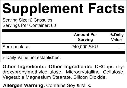 240,000 SPU Serrapeptase Capsules - 120 Enteric Coated Delayed Release Pills - Non-GMO & Gluten Free - Made in USA - 120 Count Pack