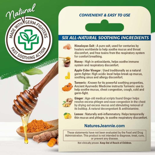 Nature's Jeannie Gargle Away All Natural Mucus Care Packets - Soothes Post Nasal Drip & Cough with Ginger Lemon Flavor