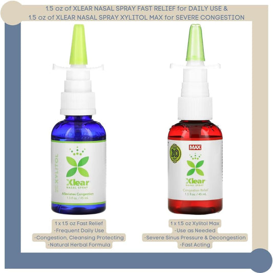 Empire Mercante Xlear Nasal Spray Bundle - Fast Relief for Daily Sinus Congestion with Xylitol Max for Severe Blockage (1.5 fl oz each) - Natural Saline Decongestant and Moisturizer