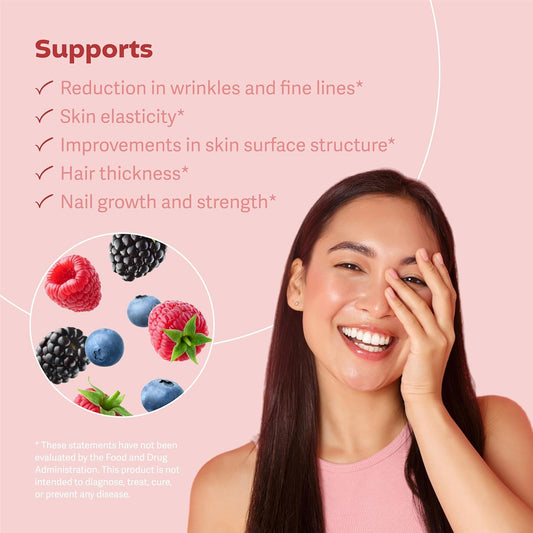 Beauty Collagen Hard Chews with Hyaluronic Acid for Skin Elasticity and Wrinkle Reduction - Clinically Proven - 90 Berry Flavor Gummies