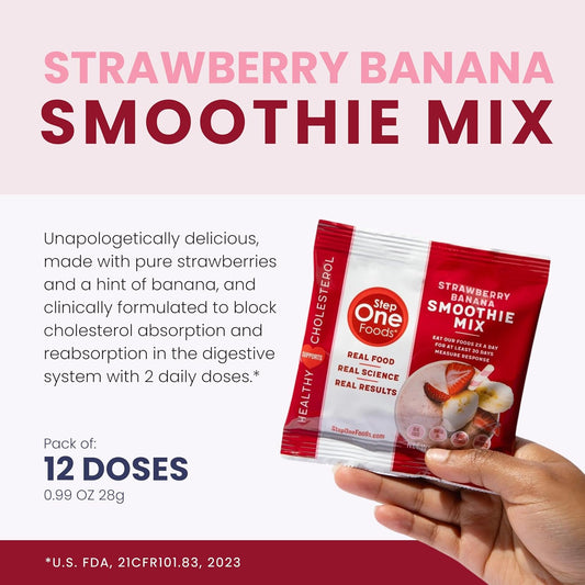 Heart Healthy Strawberry Banana Smoothie Mix with Plant Sterols, Omega 3's, and Fiber - Gluten Free, Vegan, Non-GMO Individual Packs (12 Pack)